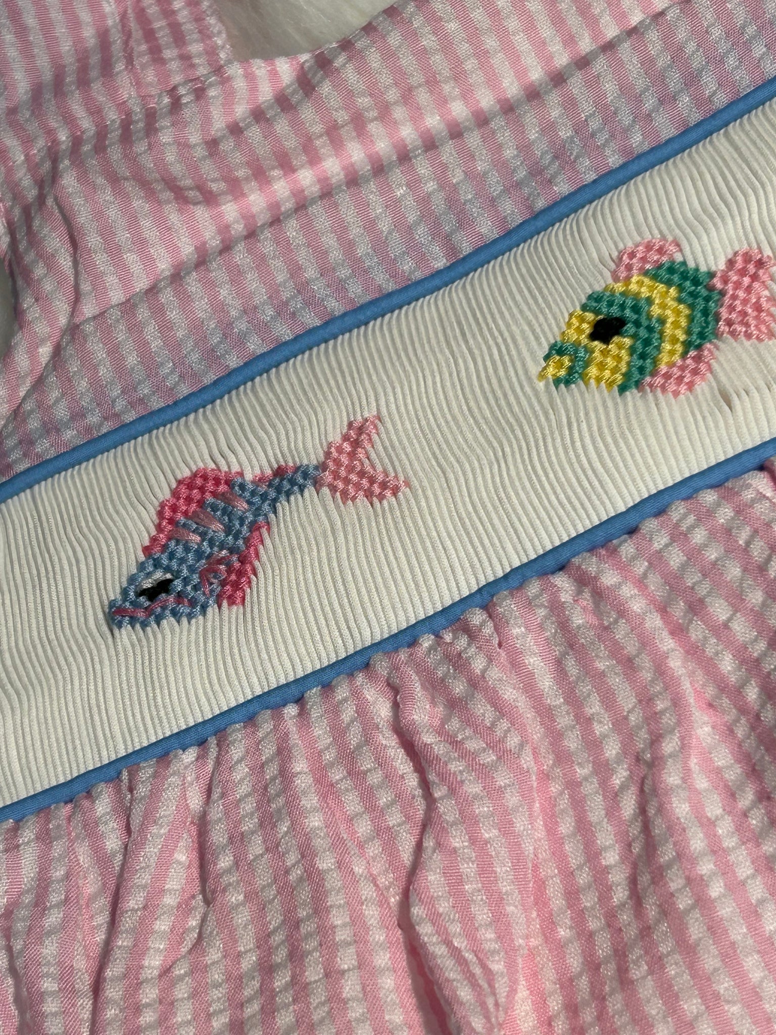 Hand smocked fish pink gingham dress