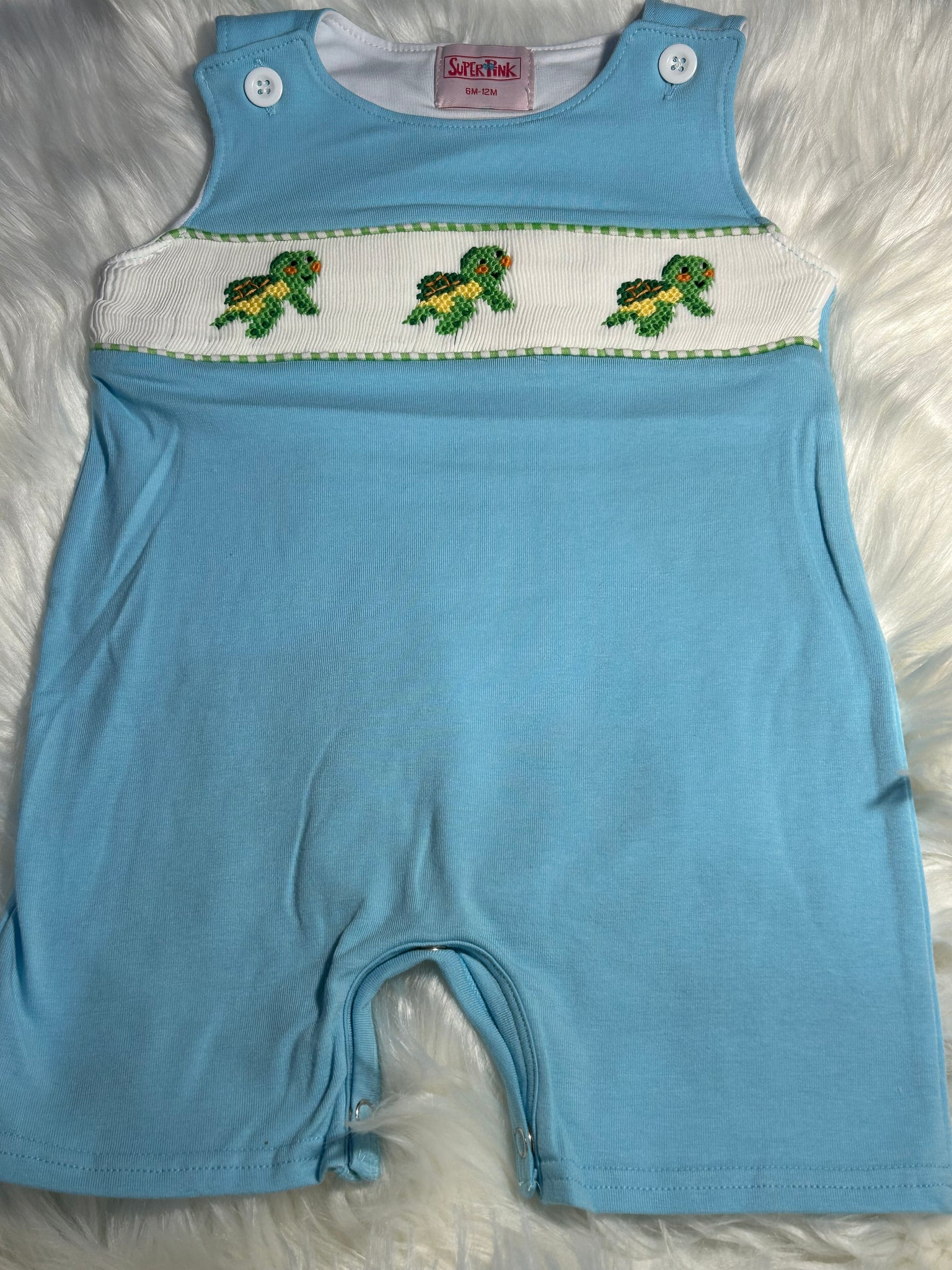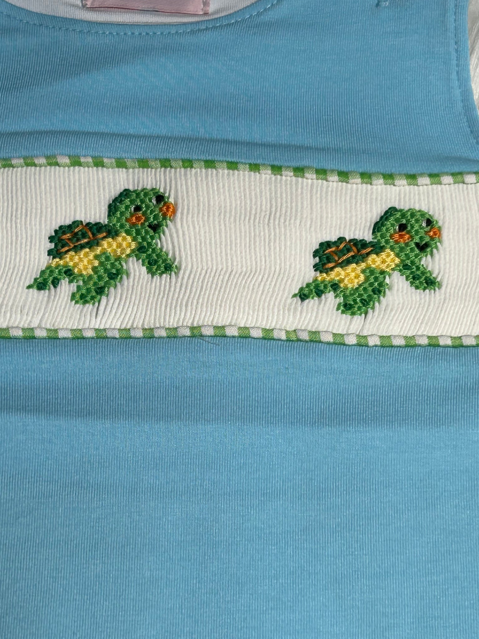 Turtle boy hand smocked boy shortall